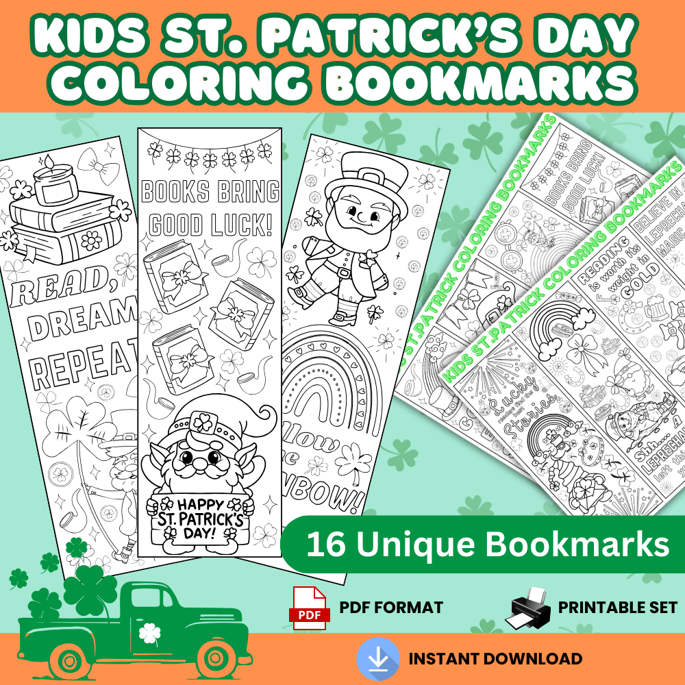 Unleash your creativity and add color to your reading adventures with our Printable Coloring Bookmarks for St. Patrick's Day! Perfect for both kids and adults, these bookmarks are an instant download, allowing you to start coloring right away.