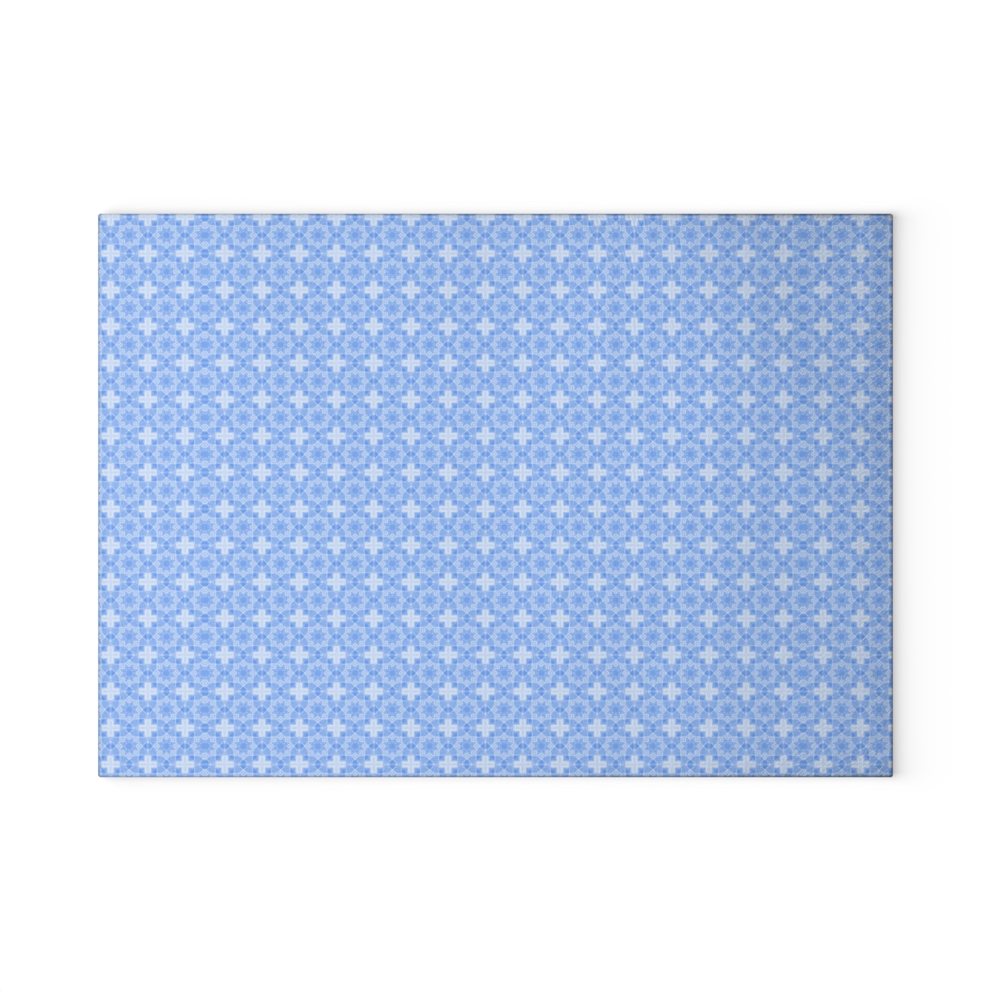 Blue Geometric Glass Cutting Board — Non-Slip Tempered Glass Chopping Board