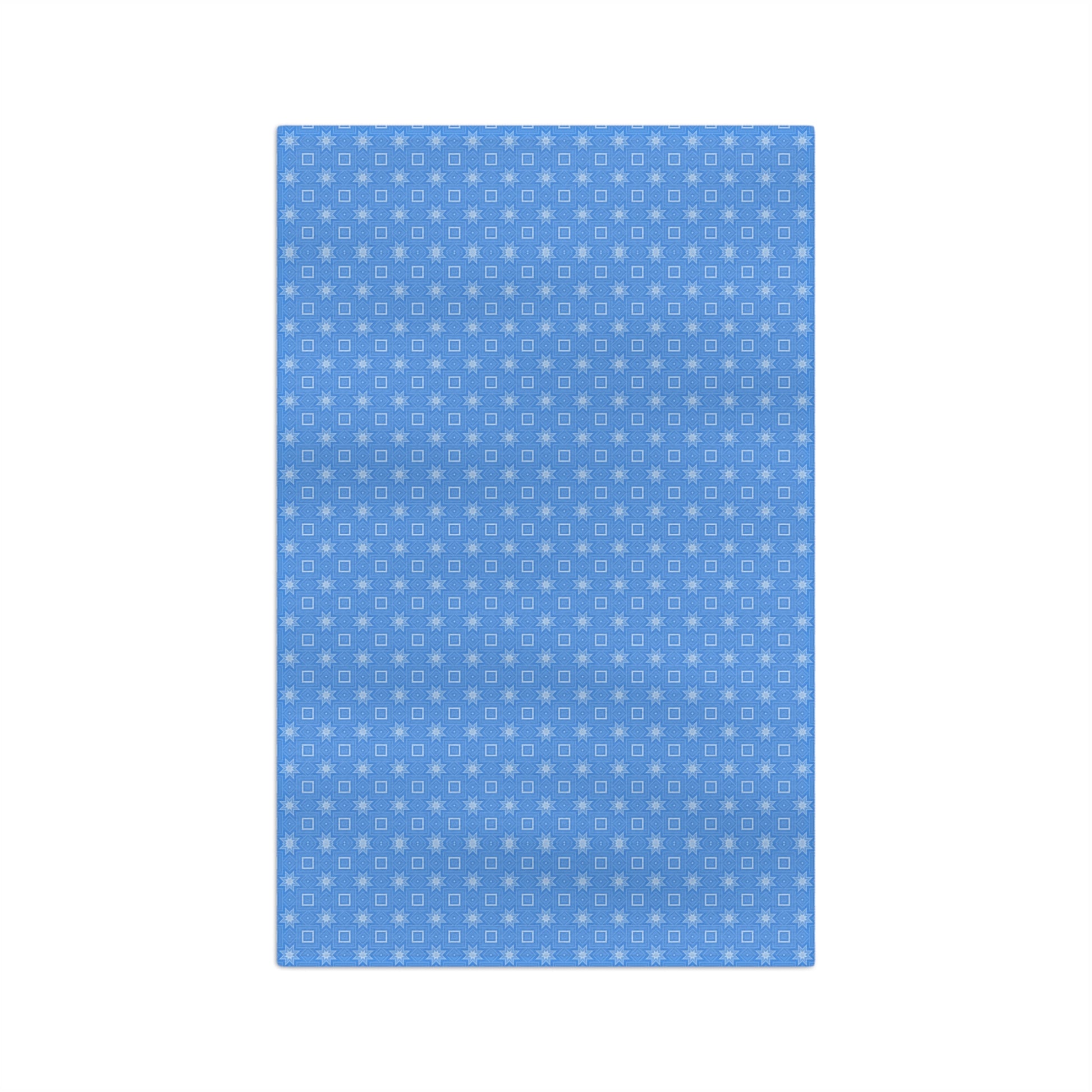 Blue Geometric Microfiber Tea Towel — Small Square Pattern Cotton-Look Kitchen Towel