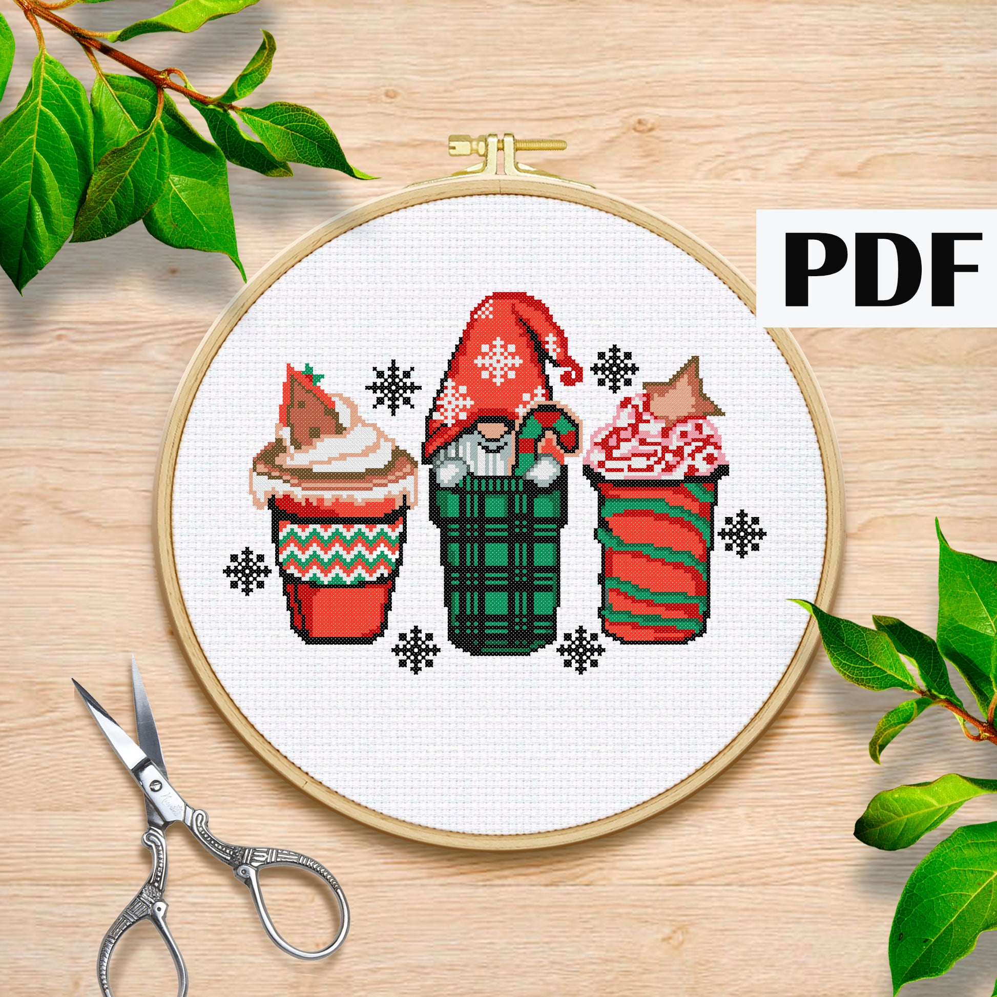Brew up some holiday cheer with this delightful pattern of festive gnomes! Your cross stitch collection won't be complete without it - easily downloaded for a seamless stitching experience.