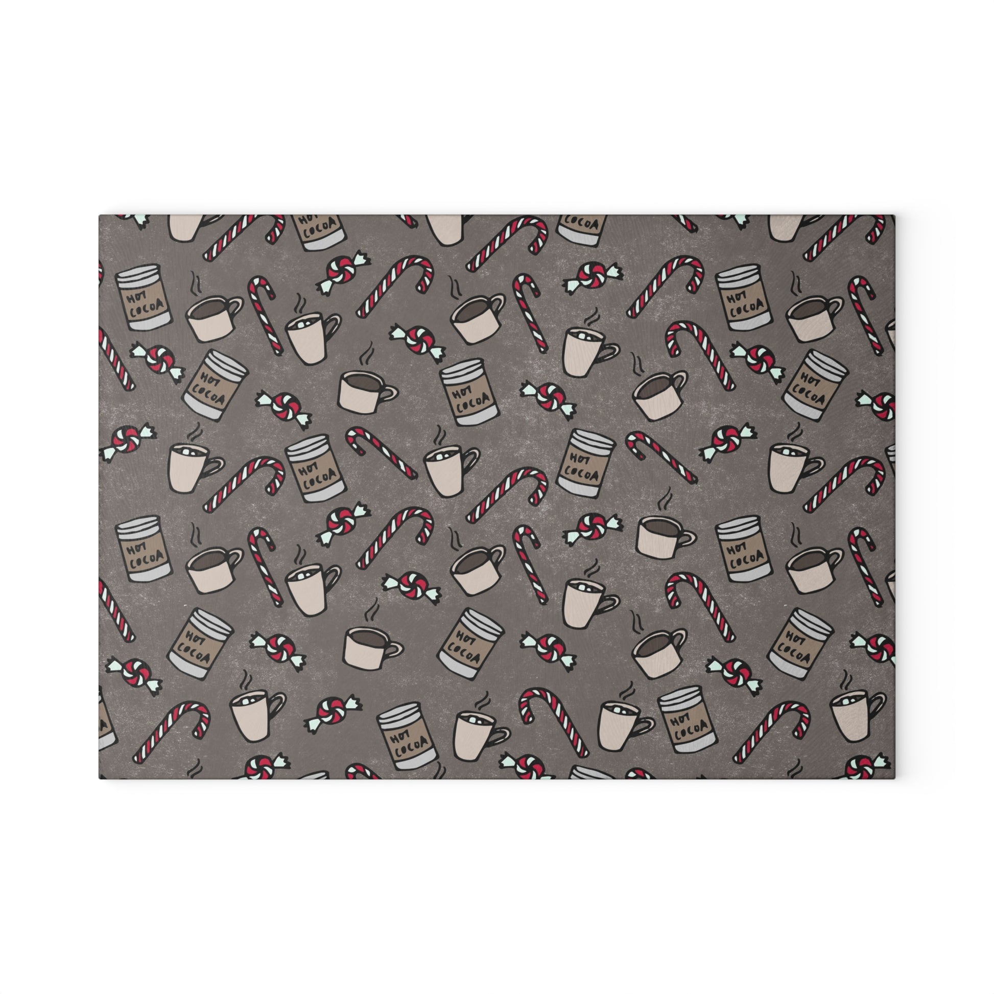 Holiday Cocoa & Candy Cane Glass Cutting Board — Festive Kitchen Decor