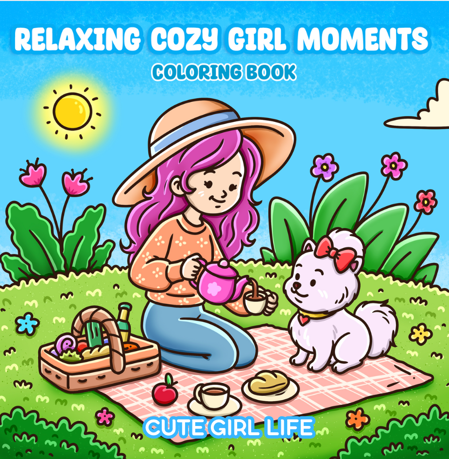 Sit back, relax, and cuddle up with the cute girl moments in "Relaxing Cozy Girl Pet Moments Coloring Book"! Dive into her world where cute meets cozy with scenes of our cozy girl hanging out with her pet. A little splash of color is all it takes to bring these scenes to life. Let the fun begin!