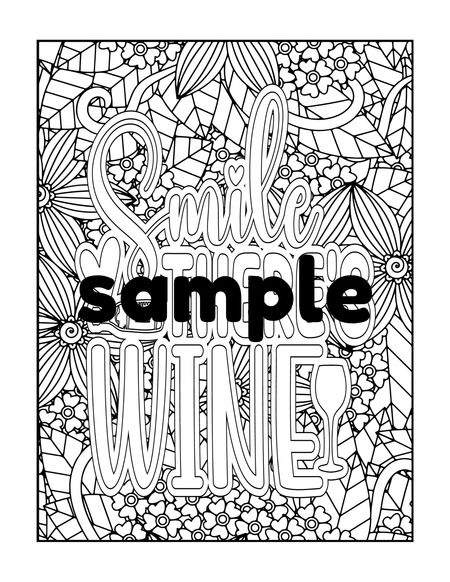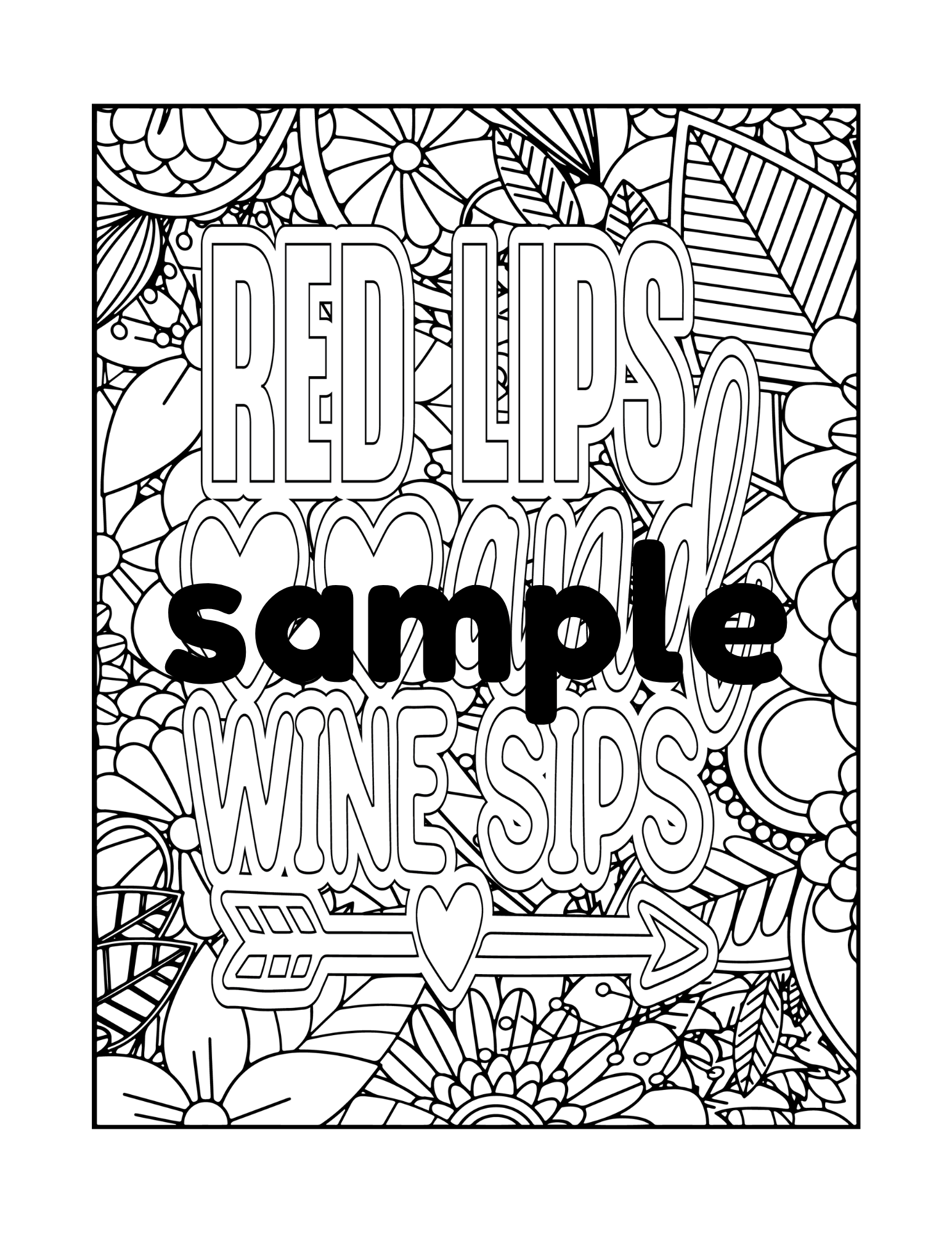 Wine Lovers Funny Quotes Adult Coloring Book | 34 Coloring Pages for Fun and Relaxation Sweet Sassy Twist | Printable Digital PDF Download